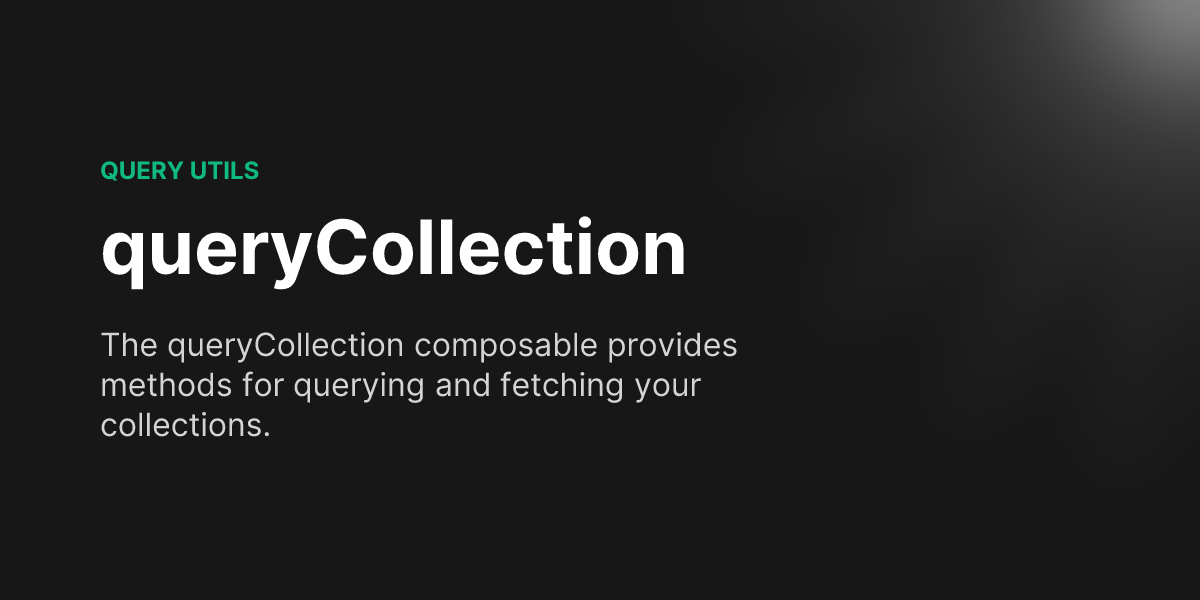 コンテンツの取得はqueryCollectionを用います。publishedがtrueの記事を取得するように絞り込んでいます。
